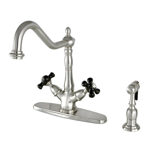 Kingston BrassDuchess KS1238PKXBS Two-Handle 2-or-4 Hole Kitchen Faucet with Brass Sprayer, Brushed Nickel Crafted in commendations to English nobility, the e...