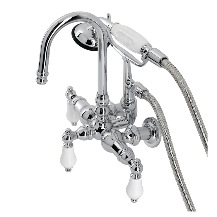 Kingston Heirloom CA12T1 - Vintage Three-Handle 2-Hole Tub Wall Mount Clawfoot Tub Faucet with Hand Shower, Polished Chrome