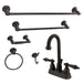 Kingston Heirloom KBK3615ALDouble-Handle 3-Hole Deck Mount 4-Inch Centerset Bathroom Faucet with 5-Piece Bathroom Accessories Kit, Oil Rubbed Bronze