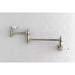 Classical artistry from the late 19th Century to early 20th Century is mirrored beautifully within this faucet's traditional charm. As an excellent tool to quickly, easily, and stylishly fill pots, eliminate strain on your joints. Pot-fillers are useful gadgets placed directly above the stove, providing easily accessible water. The foldable swing arms of this pot filler allow for extendable reach of up to 20" of length and provide long-lasting function due to their sturdy brass construction. Additionally, the dual handles prevent unwanted water spillage while enhancing the traditional theme.