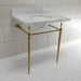 With a beautiful Carrara Marble counter top, this console sink set is a long lasting, durable, and elegant addition to your bathroom. A fabulous alternative where space is limited or tight, making them friendly for the whole family. With different shades and natural designs, otherwise known as veining, no two sinks will be alike. Also for your convenience, anti-slip rubber pads are included with the brass legs to ensure steadiness. Water supply kit, drain assembly, and the faucet are sold separately. Kingston's Carrara Marble tops are polished, but they are not sealed. Polished marble has a shiny surface and resists stains. Natural stone, even when polished, is still somewhat porous and does remain susceptible to etching by acidic compounds like fruit juice, vinegar, some cleaning solvents, etc. For customers that wish to further protect their investment the marble can be sealed. The following is intended solely for informational purposes. Kingston does not warranty nor accept liability for damages or other negative outcomes resulting from any treatment or coating applied to the countertop after purchase, whether applied by the customer or by a third party. For anyone unfamiliar with this nature of project, Kingston recommends consulting an experienced professional in your area. When looking for a sealant product, please be sure to seek a product specifically designed for use on polished marble, granite or other natural stone surfaces. Be sure to always avoid anything containing a citrus ingredient, acid ingredient, tung oil, linseed oil, or other natural oils. These can damage or discolor your marble.