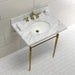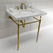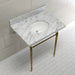 Kingston Heirloom KVPB3022M87 - Edwardian 30-Inch Carrara Marble Console Sink with Brass Legs (8-Inch, 3-Hole), Carrara Marble White/Brushed Brass