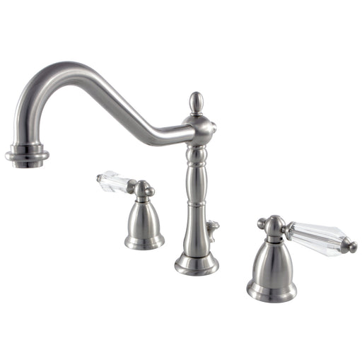 Kingston BrassKingston Heirloom KS1998WLL - Wilshire Two-Handle 3-Hole Deck Mount Widespread Bathroom Faucet with Brass Pop-Up, Brushed Nickel English histori...