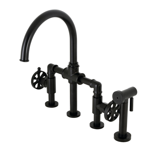 Original price $1,024.95 - Original price $1,024.95Original price $1,024.95$1,024.95$1,024.95 - $1,024.95Current price $1,024.95| /Kingston Sona KS2330RX - Belknap Two-Handle 4-Hole Deck Mount Industrial Style Bridge Kitchen Faucet with Brass Sprayer, Matte Black
