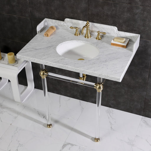 Kingston BrassKingston Tulare LMS36MA7 - Pemberton 36-Inch Carrara Marble Console Sink with Acrylic Legs (8-Inch, 3-Hole), Carrara Marble White/Brushed Brass ...