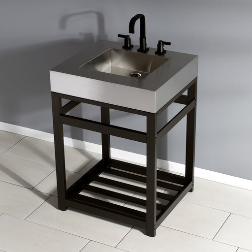 Kingston BrassKingston Kingston Commercial KVSP2522B0 25-Inch Stainless Steel Console Sink with Steel Base (8-Inch, 3-Hole), Brushed/Matte Black The Kingston ...