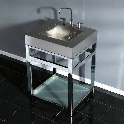 Kingston BrassKingston Kingston Commercial KVSP2522B1 25-Inch Stainless Steel Console Sink with Steel Base and Glass Shelf (8-Inch, 3-Hole), Brushed/Polished Ch...