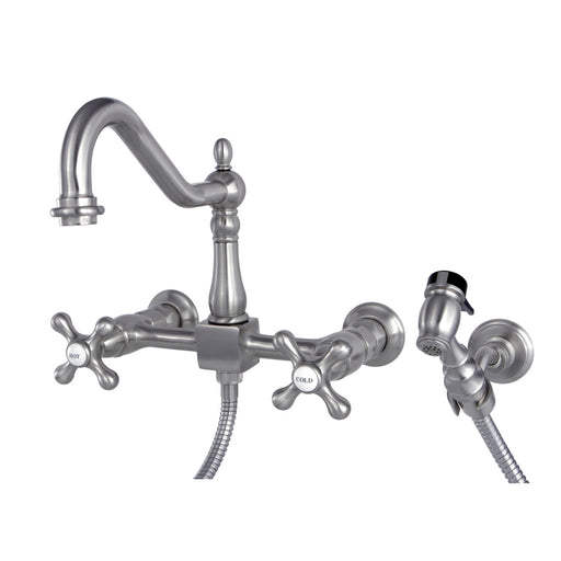 Original price $534.95 - Original price $534.95Original price $534.95$534.95$534.95 - $534.95Current price $534.95| /Kingston Heirloom KS1248AXBS - Heritage Two-Handle 3-Hole Wall Mount Bridge Kitchen Faucet with Brass Sprayer, Brushed Nickel