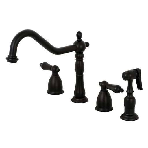 Kingston BrassKingston Heirloom KB1790ALBS - Heritage Double-Handle 4-Hole Widespread Kitchen Faucet with Brass Sprayer, Matte Black A lavish spark of traditi...