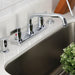 The chic fashion of this faucet is distinguished by its expressive artistry and flat, ergonomic levers. Easily adaptable to any style, centerset faucets are admired for their single unit and ease of installation. The polished chrome finish will also add a glistening elegance to your kitchen ensemble. A sturdy brass construction and swivel abilities make for a reliant and long lasting fixture. Matching accessories are available for use.