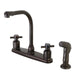 Kingston Tulare FB755DXSP - Concord Two-Handle 4-Hole 8" Centerset Kitchen Faucet with Side Sprayer, Oil Rubbed Bronze