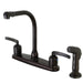 Kingston Tulare FB755EFLSP - Centurion Two-Handle 4-Hole 8" Centerset Kitchen Faucet with Side Sprayer, Oil Rubbed Bronze