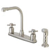 Kingston Tulare FB758DXSP - Concord Two-Handle 4-Hole 8" Centerset Kitchen Faucet with Side Sprayer, Brushed Nickel