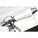 The graceful elegance of timeless design is beautifully merged between British flair and Victorian delicacy within this faucet's white porcelain levers. Able to fit a variety of sink set-ups, widespread kitchen faucets can be utilized in several multi-hole configurations. These are ideal for larger kitchens, as they are more spread apart, and feature a 3-hole installation. The polished chrome finish will also add a glistening elegance to your kitchen ensemble. Allow the brass construction to provide a sturdy and reliant fixture. Matching accessories are available for use.
