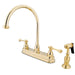 Kingston Tulare KB3752BLBS - Vintage Two-Handle 4-Hole 8" Centerset Kitchen Faucet with Brass Sprayer, Polished Brass
