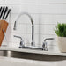 Classical artistry from the late 19th Century to early 20th Century is mirrored beautifully within this faucet's traditional charm. Easily adaptable to any style, centerset faucets are admired for their single unit and ease of installation. Allow the polished chrome finish of this particular faucet to bring a glistening elegance to your kitchen. A sturdy brass construction and swivel abilities make for a reliant and long lasting fixture. Matching accessories are available for use.