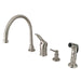 Kingston Tulare KB818K8 - Wyndham Single-Handle 4-Hole Widespread Kitchen Faucet with Side Sprayer and Soap Dispenser, Brushed Nickel