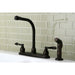 Kingston Tulare KB8755NFLSP - NuWave French Two-Handle 4-Hole 8" Centerset Kitchen Faucet with Side Sprayer, Oil Rubbed Bronze