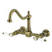 Kingston Heirloom KS1243BPL - Bel-Air Two-Handle Wall Mount Bridge Kitchen Faucet, Antique Brass