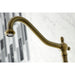 A lavish spark of traditionally stylized glamour is brought to your kitchen ensemble with this beautiful faucet. Because of the horizontal pop that it gives, it is more of a centerpiece, perfect for planning a design around. Additionally, the unique look is great for a variety of styles from Art Deco to Farmhouse. The antique brass finish will also provide a long lasting and warm touch to your kitchen ensemble. Allow the brass construction and swivel abilities to provide a sturdy and reliant fixture as it maximizes your counter space. Celebrate sophistication and traditional decor with this statement piece.