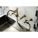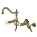 Kingston Heirloom KS1243PXBS - Heritage Two-Handle 3-Hole Wall Mount Bridge Kitchen Faucet with Brass Sprayer, Antique Brass