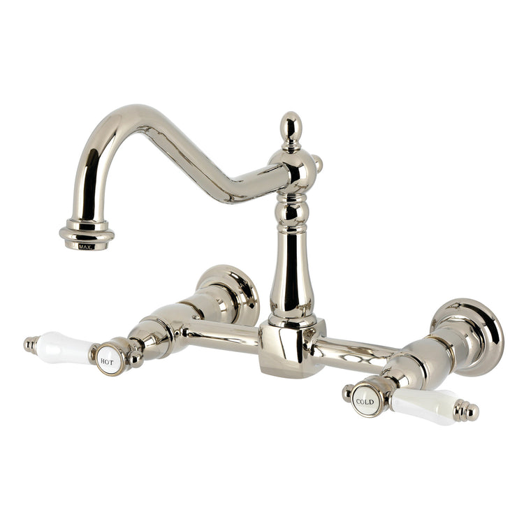Kingston Heirloom KS1246BPL - Bel-Air Two-Handle Wall Mount Bridge Kitchen Faucet, Polished Nickel