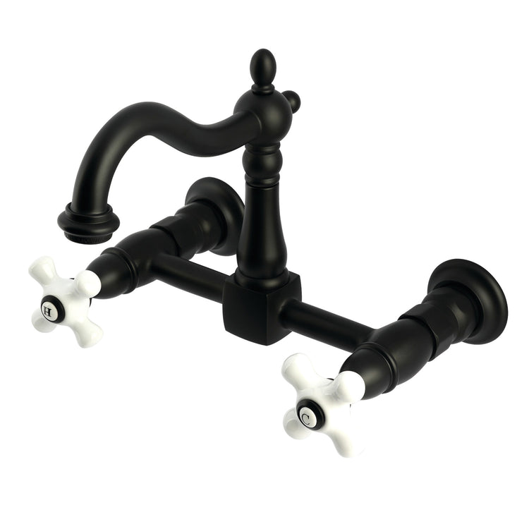 Kingston Heirloom KS1260PX - Heritage Two-Handle 2-Hole Wall Mount Bridge Kitchen Faucet, Matte Black