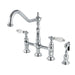 Kingston Heirloom KS1271WLLBS - Wilshire Two-Handle 4-Hole Deck Mount Bridge Kitchen Faucet with Brass Sprayer, Polished Chrome