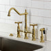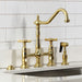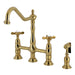Kingston Heirloom KS1277BEXBS - Essex Two-Handle 4-Hole Deck Mount Bridge Kitchen Faucet with Brass Sprayer, Brushed Brass