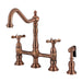 Kingston Heirloom KS127BEXBSAC - Essex Two-Handle 4-Hole Deck Mount Bridge Kitchen Faucet with Brass Sprayer, Antique Copper