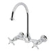 Transform your kitchen into a stylish and efficient space with the Essex collection wall mount kitchen faucet from Kingston. Featuring a graceful gooseneck swivel spout and timeless cross handles, this faucet brings the refined charm of early English design to your home. Expertly crafted from solid brass and fitted with durable ceramic cartridges, it promises long-lasting performance and reliability. Elevate your kitchen's aesthetic and functionality with this exquisite addition.