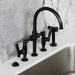 Kingston Sona KS2330TKL - Hallerbos Two-Handle 4-Hole Deck Mount Bridge Kitchen Faucet with Brass Sprayer, Matte Black