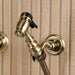 Introducing this wall mount kitchen faucet from the Heritage Collection by Kingston Brass, where classic design meets modern convenience. This stunning traditional kitchen faucet features a regal Victorian spout and exquisite porcelain handle, exuding timeless charm. The swivel spout extends 8 inches from the wall, providing flexibility and ease of use, while the brass side spray with a generous 30-inch hose ensures you can reach every corner of your sink with ease. Plus, its wall-mounted design allows for customizable installation height, making it the perfect addition to any kitchen. Transform your culinary space with this blend of beauty and functionality!