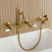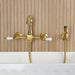 Kingston Heirloom KS2447PLBS - Heritage Two-Handle 3-Hole Wall Mount Bridge Kitchen Faucet with Brass Sprayer, Brushed Brass