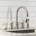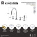 Enhance the look of your kitchen with the addition of this widespread kitchen faucet with side spray from the Bel-Air collection by Kingston. The graceful elegance of British flair is showcased in this faucet's gooseneck swivel spout and timeless white porcelain levers. Crafted from solid brass and equipped with a durable ceramic cartridge, it ensures years of reliable, trouble-free performance.