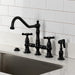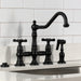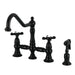 Kingston Heirloom KS3270BEXBS - Essex Two-Handle 4-Hole Deck Mount Bridge Kitchen Faucet with Brass Sprayer, Matte Black