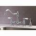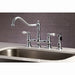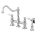 Kingston Heirloom KS3271PLBS - Restoration Two-Handle 4-Hole Deck Mount Bridge Kitchen Faucet with Brass Sprayer, Polished Chrome