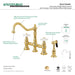 Kingston Heirloom KS3272PXBS - Restoration Two-Handle 4-Hole Deck Mount Bridge Kitchen Faucet with Brass Sprayer, Polished Brass