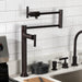 Embellish your contemporary home with the swankiness and elegance that this faucet provides. As an excellent tool to quickly, easily, and stylishly fill the pots directly on or next to the stove, eliminate strain on your joints. Deck mount pot fillers are useful gadgets placed directly on the countertop, providing easily accessible water. The foldable swing arms of this pot filler allow for extendable reach of up to 19-15/16" of length and provide long-lasting function due to their sturdy brass construction. Additionally, the dual handles prevent unwanted water spillage while enhancing the modern theme.