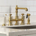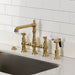 Kingston Tulare KS7277BPLBS - Bel-Air Two-Handle 4-Hole Deck Mount Bridge Kitchen Faucet with Brass Sprayer, Brushed Brass