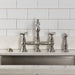 The graceful elegance of timeless design is beautifully merged between British flair and Victorian delicacy within this bridge faucet's cross handles and traditional straight spout. The solid brass construction and ceramic cartridge provide a sturdy and reliable fixture, great for use with any sink. Whether you are striving for a Victorian-inspired kitchen or a vibrant traditional-themed space, the unique bridge design is a highly favored option amongst those doing period-style kitchens. Because of its added architectural elements and detailing, the brass side spray adds elegant functionality to this exceptional faucet.