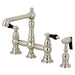 Kingston Tulare KS7278PKLBS - Duchess Two-Handle 4-Hole Deck Mount Bridge Kitchen Faucet with Brass Sprayer, Brushed Nickel