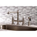 Kingston Tulare KS7278PXBS - English Country Two-Handle 4-Hole Deck Mount Bridge Kitchen Faucet with Brass Sprayer, Brushed Nickel