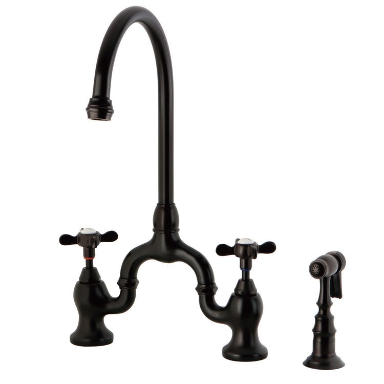 Kingston Heirloom KS7795BEXBS - Essex Two-Handle 3-Hole Deck Mount Bridge Kitchen Faucet with Brass Sprayer, Oil Rubbed Bronze