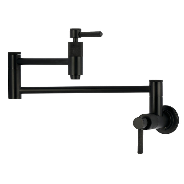 Kingston Sona KS8100KNL - Convergent Two-Handle 1-Hole Wall Mount Pot Filler Faucet with Knurled Handle, Matte Black