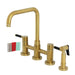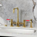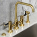 Kingston Sona KS8287DKLBS - Kaiser Two-Handle 4-Hole Deck Mount Bridge Kitchen Faucet with Brass Sprayer, Brushed Brass