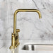This faucet boasts bold, sleek design with its cylindrical styling. While bridge faucets typically have a traditional appeal, this particular design is a more modern interpretation. Allow the brushed brass finish to pop against your surrounding kitchen decor due to the added architectural elements. The brass construction and swivel abilities provide a sturdy and reliant fixture, great for both dual and single bowl sinks. Utilize the included matching finish side-sprayer for convenience in cleaning hard-to-reach areas.