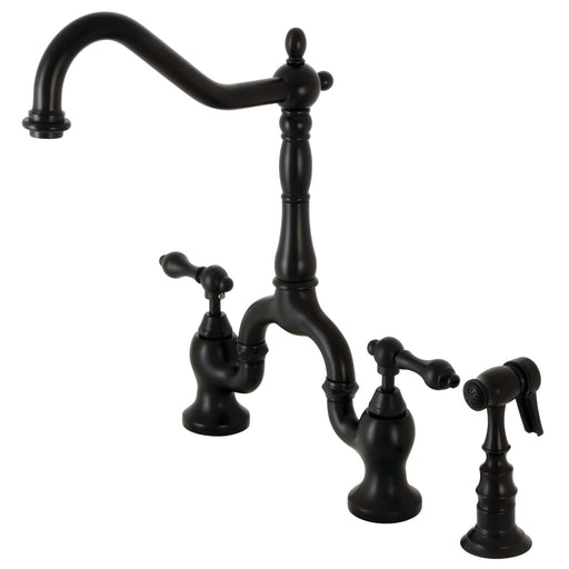 Kingston BrassKingston Heirloom KS7750ALBS - English Country Two-Handle 3-Hole Deck Mount Bridge Kitchen Faucet with Brass Sprayer, Matte Black Embody the ext...