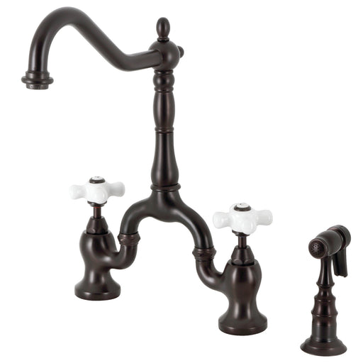 Kingston BrassKingston Heirloom KS7755PXBS - English Country Two-Handle 3-Hole Deck Mount Bridge Kitchen Faucet with Brass Sprayer, Oil Rubbed Bronze Embody t...