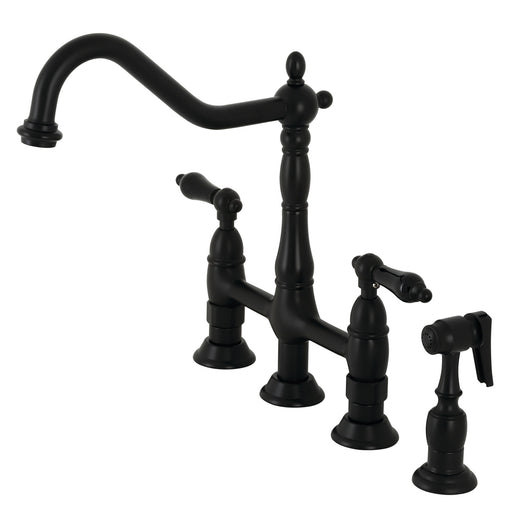 Kingston BrassKingston Heirloom KS1270PKLBS - Duchess Two-Handle 4-Hole Deck Mount Bridge Kitchen Faucet with Brass Sprayer, Matte Black Crafted in commendati...